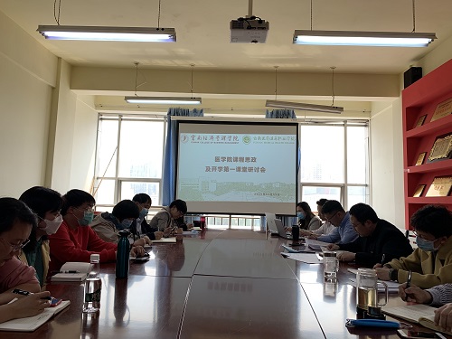 2020年4月10日,云南经济管理学院医学院在二教506以“如何开展课程思政及开学第一课堂”为主题召开课程思政研讨会,与会人员有校长助理孙明山、教学工作部部长高远、思政部部长韩跃红、学生工作部部长李楠、医学院院长助理王红卫及各部系主任、教研室主任,本次研讨会由教学工作部部长高远主持。