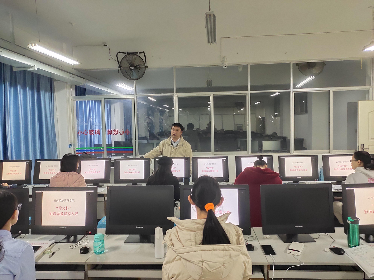 - 云南经济管理学院医技系医学影像技术影像设备建模大赛 12月17日,由云南经济管理学院医技系医学影像技术教研室主办的“影像设备建模大赛”在海源校区如期举行。大赛吸引了医学影像技术专业学生的热情参与,在平时多天培训后,以今天的影像设备建模技能大赛来检验学生们对医学影像设备学课程的热爱和学习激情。本次大赛的评委由医技学院副院长兼医学影像设备学课程负责人张卫东老师,影像教研室主任李蕊老师,和影像教研室专职老师薛晓莹担任。比赛地点为海源校区二教604电脑室,时间为晚上19:00-22:00,耗时