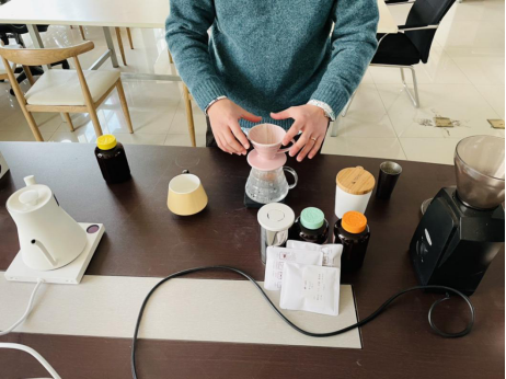 - 云南经济管理学院医技系医学检验技术教研室职工活动--品咖啡 2020年12月08日,在这个阳光明媚的日子里,云南经济管理学院医技系检验教研室举行了品鉴咖啡活动。活动期间,有着专业咖啡师背景的何一博老师给大家逐一讲解了咖啡的背景、起源、主要成分及咖啡的情愫等方面,同时向各位老师展示样品咖啡豆,现磨现泡,好不雅致!在研磨咖啡过程中,何老师介绍到:咖啡文化包含了很多东西,如人们喝咖啡的习惯、对咖啡的态度及这个地方的咖啡历史等。咖啡文化源远流长,因此做咖啡之前,我们必须要了解咖啡的文化,然才能