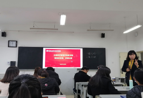- 云南经济管理学院医技系青年教师讲课大赛新闻稿 为了进一步加强我校师资队伍建设,提升教师整体素质,全面有效提高课堂教学质量,医技系以“以赛促教”的方式,进一步提高教师们的教育激情,加强教育教学水平。2020年12月3日上午9点医技系在海源校区二教举行了青年教师讲课比赛。本次比赛除丁伟、汤学国、胡朝凤、吕燕波、张春、张卫东、谭雅丹等各位主任担任评委,还很荣幸地请到了三位优秀的校外专家毛晓琴、宋武战、薛丽老师担任评委。参赛人员分别是柴永宝、刘进、李蕊、佘文婕、何一博、李敏、李抒蔚、陆蔡靖、陆