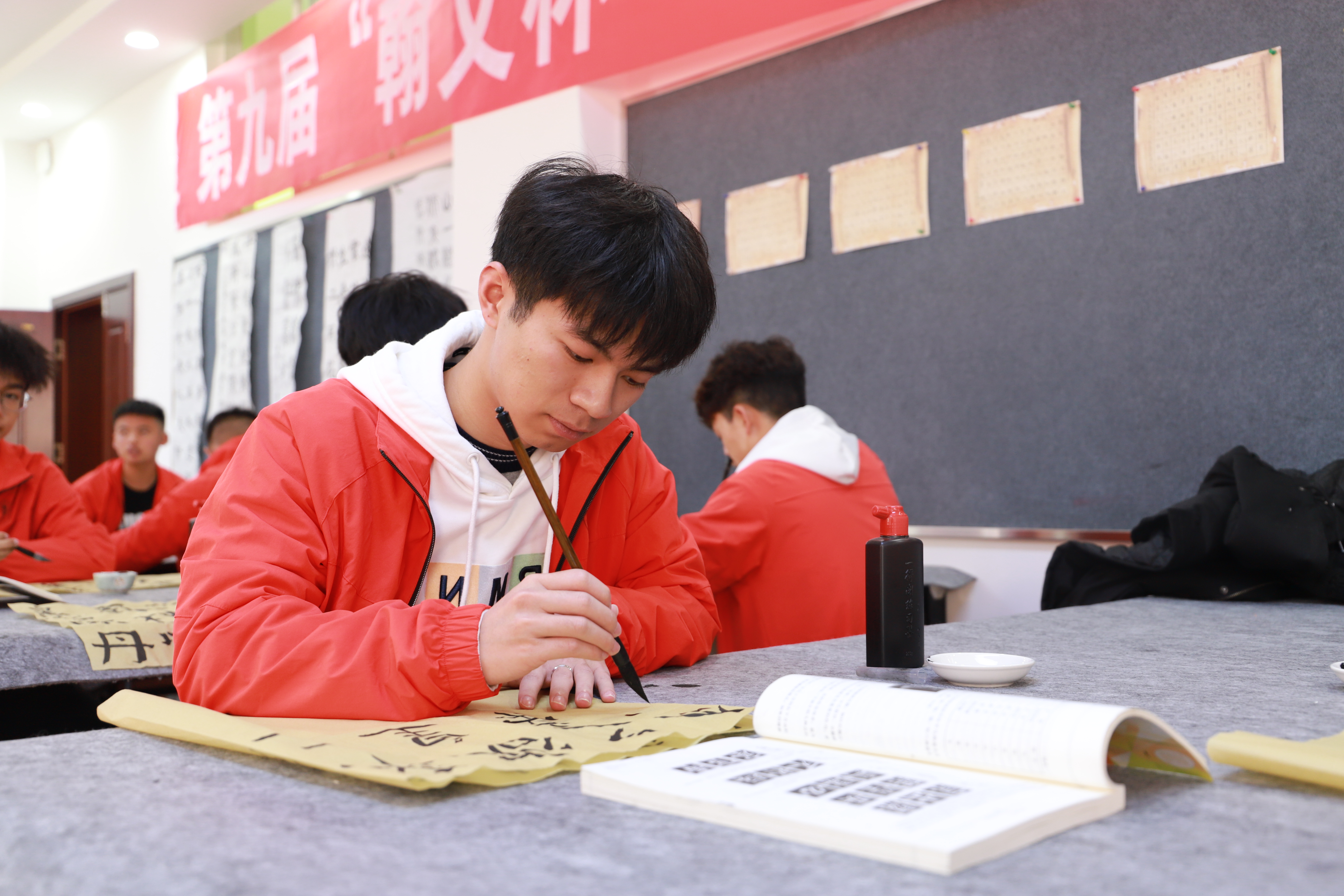 软笔书写技能实验室,2间,使用面积为213.7㎡,主要配置书法示范台、书画桌、书画毛毡墙、多媒体教学设备等。该实验室主要用于教师从业的基本功——软硬笔书法教学。主要开设课程《书写技能》、《书法培训》。主要开设笔法训练、楷书八个基本笔画训练、楷书间架结构训练、楷书章法训练等项目教学。可以培养学生汉字书写能力、对传统文化的学习能力、审美能力,提升他们对于中华民族的热爱。