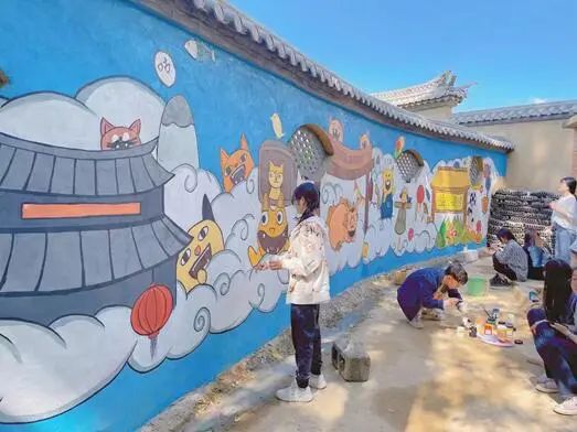 在墙绘景观设计上以瓦猫为主,将房屋、小动物、花花草草合理布局应用,,以不同图案展开铺设,将环境改善。视觉传达设计系的同学和老师使用墙绘的方式使村庄有了属于自己的吸引游客的方式,带动当地经济收入,真正落实乡村振兴战略。