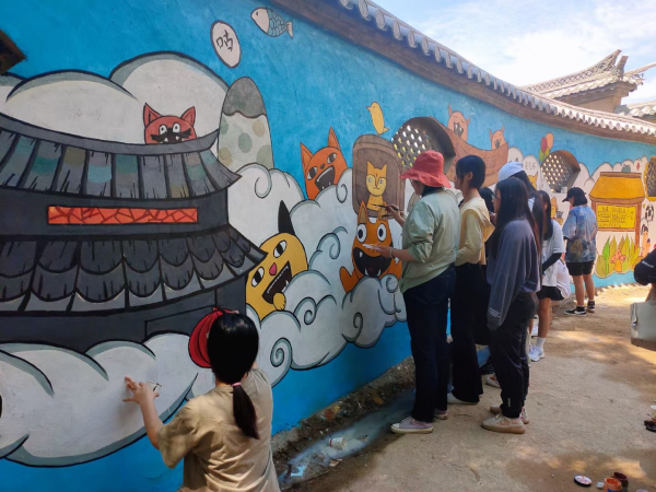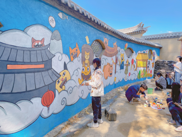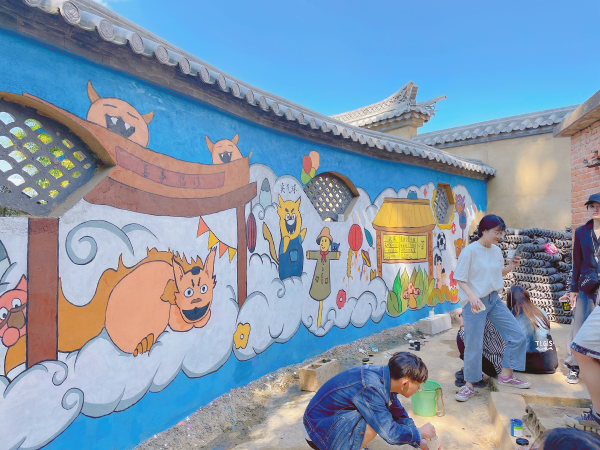 云南经济管理学院艺术与传媒学院设计系20级本科视觉传达设计专业全体学生对安宁市县街街道办石江村展开了为期5天的壁画项目实践,在各级领导及村民的配合下,壁画绘制顺利如期展开。
