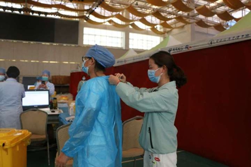 此外,为保障疫苗接种工作安全有序,我校团委学生会、党员活动中心及教官学长面向全学院招募100多名志愿者,分批分时段开展志愿服务。从进门处的扫码测体温、血压,到候诊区的信息登记再到接种后的留观引导,到处都能看到志愿者的身影。