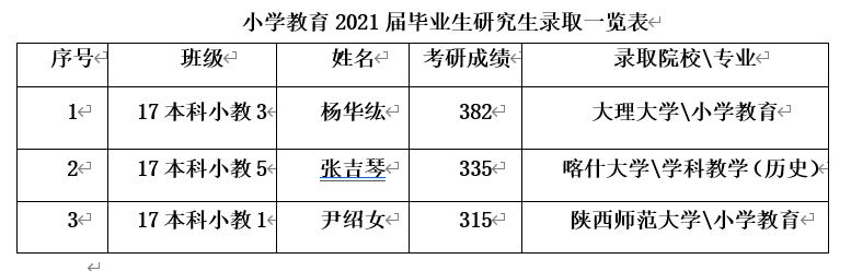 热烈祝贺云南经济管理学院教育学院2021届小学教育专业3位同学考取硕士研究生。
